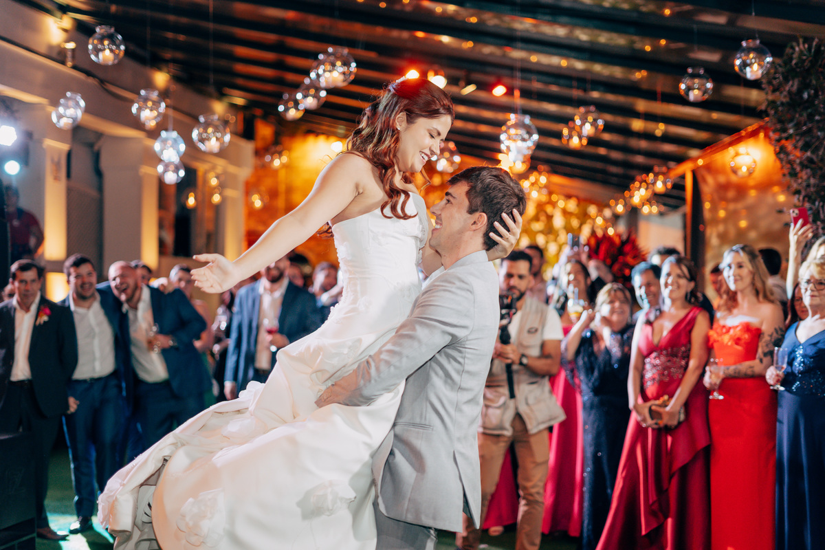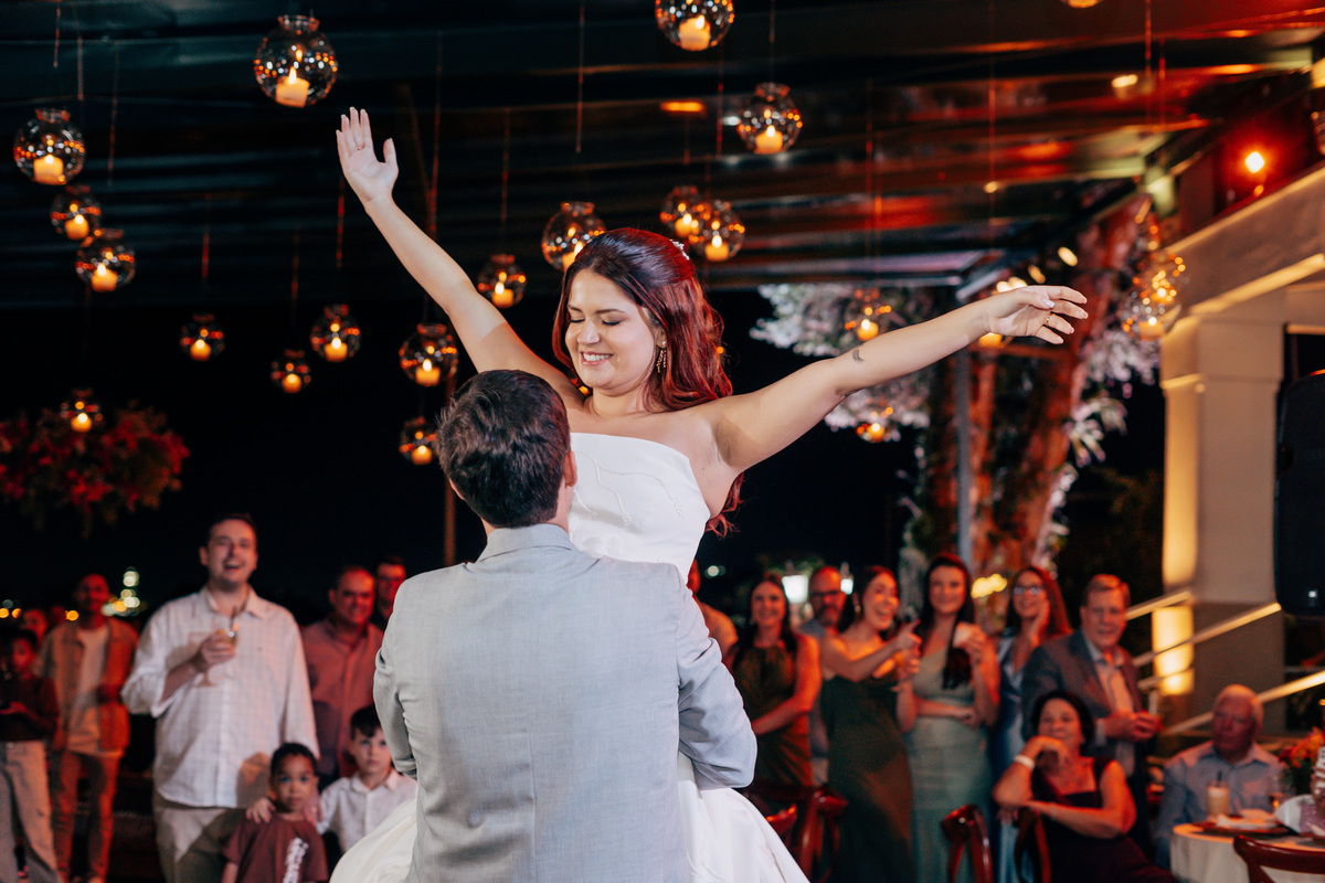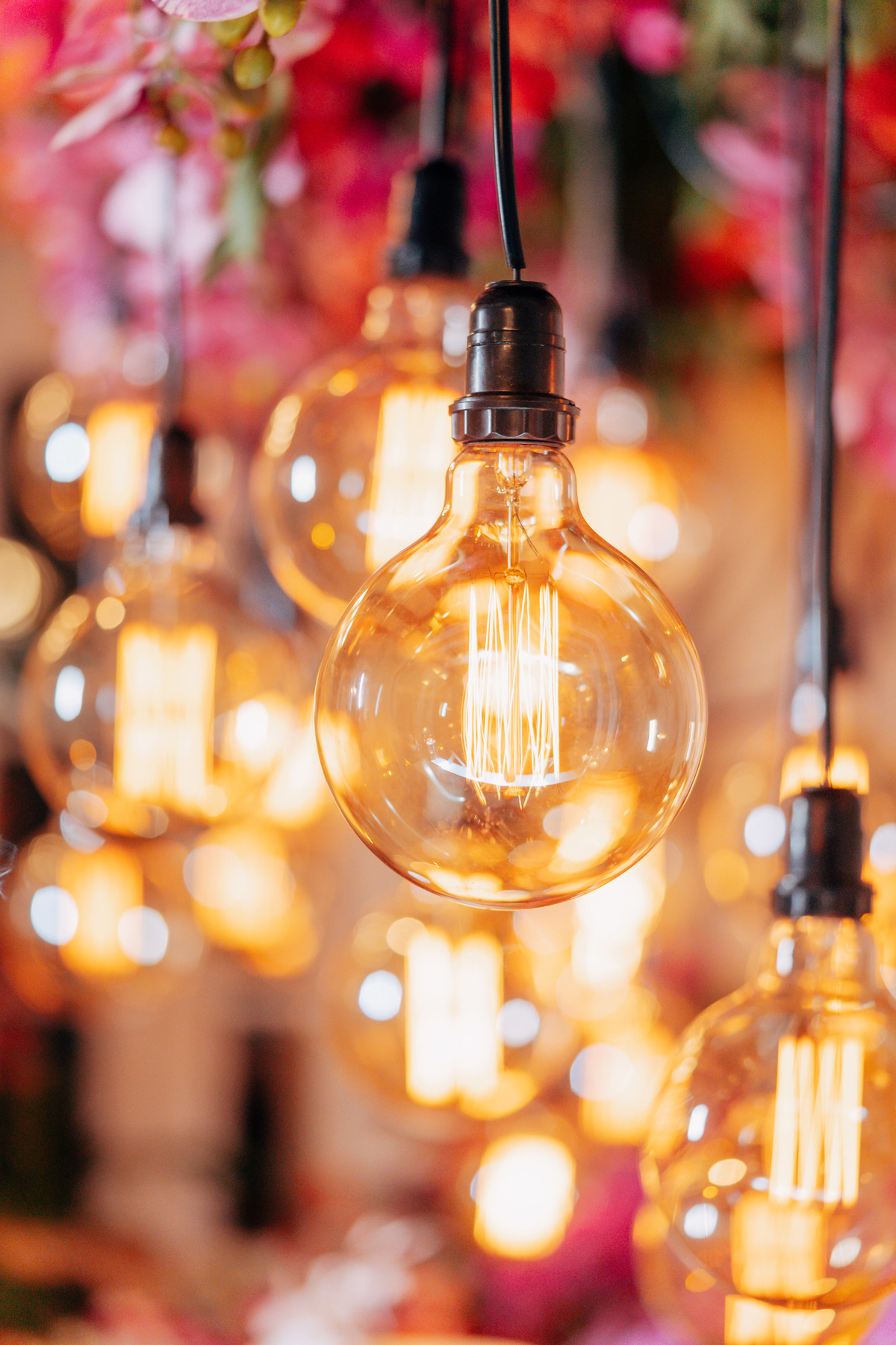 Velas suspensas e lâmpadas de filamento: @illuminare_eventos